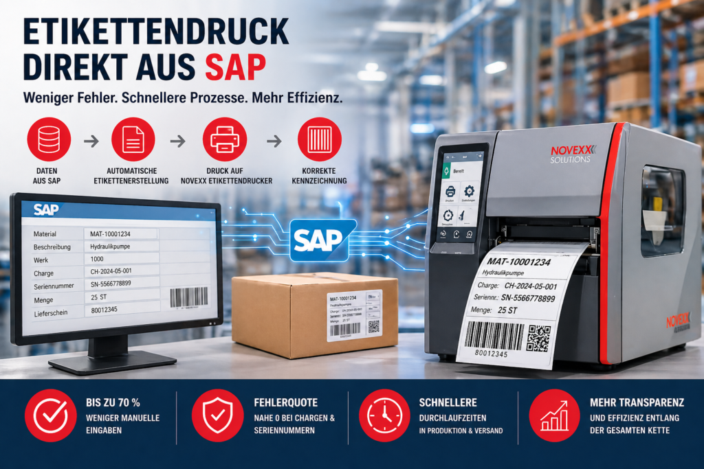 Die direkte Steuerung von Etikettendruckern aus SAP ermöglicht eine zentrale Datenquelle für alle Kennzeichnungsprozesse. Dadurch werden Medienbrüche vermieden und die Datenkonsistenz erhöht.